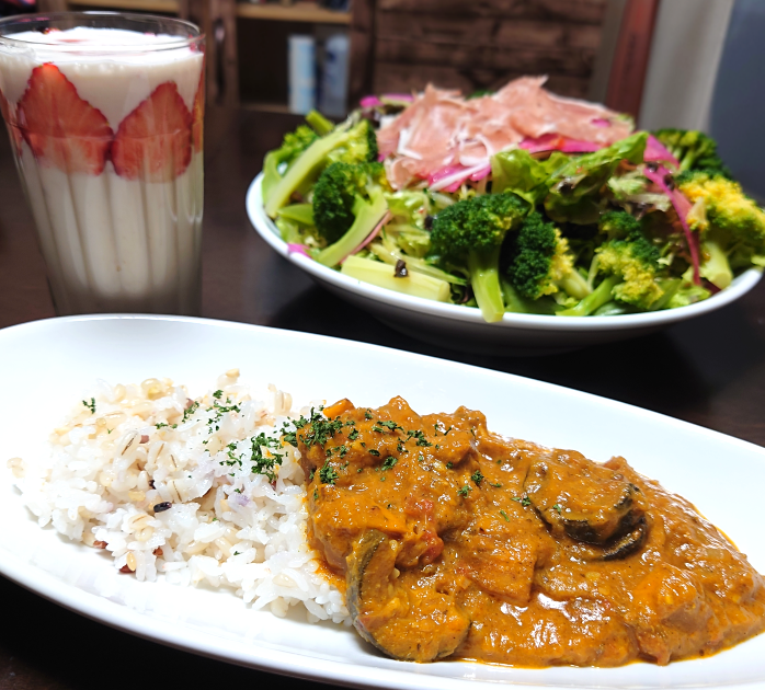 そしてカレーにはラッシーでしょと思っていちごラッシーもお付けしました。