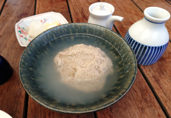 こちらのコンクリートを煮詰めてギュッとしたようなのが、そばがき。母がそばがき大好き妖怪なので、メニューにあれば必ず注文するんですよね。ふわふわもちっとしててこれも美味しい。