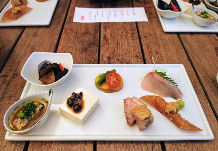 11時になり、予約のお客様から順に案内がはじまります。我々は室内ではなくテラスというほどむき出しにはなっていないサンルーム?のような場所でした。天気がよかったこともあり自然の中って感じで気持ちいい~!!ちなみにお手洗いも綺麗です!!
