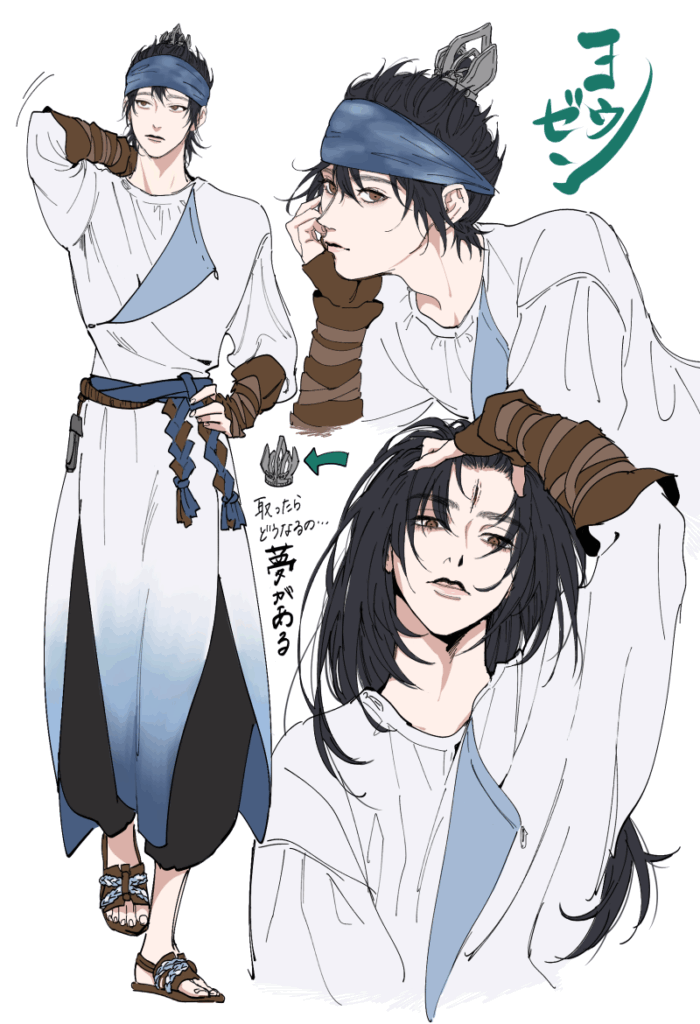ヨウゼン様、描きたくなるお姿していらっしゃるわ~~~公式美青年設定ですもんね。いくら美しく描いてもいいってことですからそら楽しいですわ。