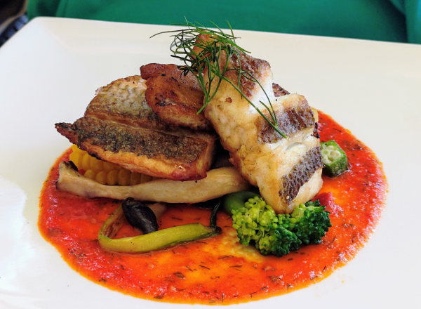 メインは「仔羊モモ肉のロースト、粒マスタードソース」と「本日のお魚料理」お肉は柔らかいし魚は表面サックサク中ふわっふわ・・・幸せ・・・。どちらも下に結構野菜があって大変に有難いです。ちらっと見えるとうもろこしもおいしんだこれが