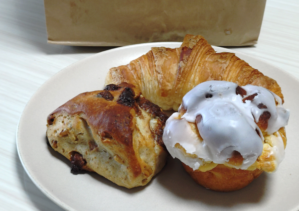 クロワッサンとショコラは層が薄くてとにかくサックサク!なのに中はしっかりもっちり。スコーンはキャラメルとありましたが、くるみが強くてありがたい誤算。スコーンとパンの間?ぽい食感でスコーンのパサついた感じは一切なくしっとりおいしい!ブリオッシュ系はもう生地がなめらかで溶けちゃう・・・なにこれぇ~