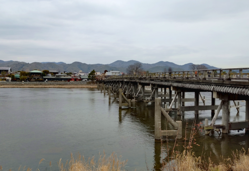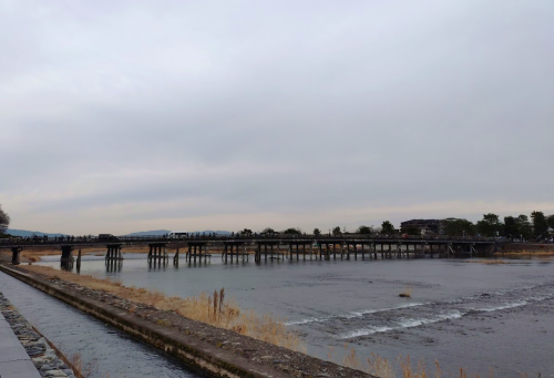 見えてきたので写真撮ったんですけど、載せることに果たしてなんの意味があるのかと思うレベルの下手クソ渡月橋。くっろ(黒)いや、天気がね・・・良くなかったですからー・・・