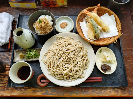 我々は「天ざる膳」を注文。きたーーー美味しそう!!というかこの写真うまっえっこれオフィシャル写真?うまそうすぎて写真撮影の腕が急速に上がってる。